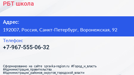 РБТ, школа по адресу 192007, Россия, Санкт-Петербург, Воронежская, 92 в дальнейшем Организация, размещена в следующих категориях: