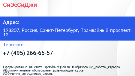 СиЭсСиДжи по адресу 198207, Россия, Санкт-Петербург, Трамвайный проспект, 12 в дальнейшем Организация, размещена в следующих категориях: