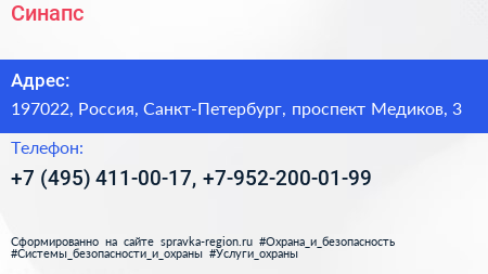 Синапс по адресу 197022, Россия, Санкт-Петербург, проспект Медиков, 3 в дальнейшем Организация, размещена в следующих категориях: