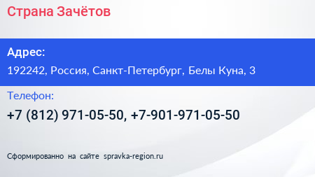 Страна Зачётов по адресу 192242, Россия, Санкт-Петербург, Белы Куна, 3 в дальнейшем Организация, размещена в следующих категориях: