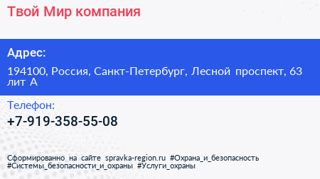 Твой Мир, компания по адресу 194100, Россия, Санкт-Петербург, Лесной проспект, 63 лит А в дальнейшем Организация, размещена в следующих категориях: