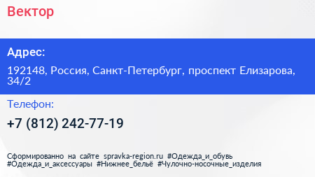 Вектор по адресу 192148, Россия, Санкт-Петербург, проспект Елизарова, 34/2 в дальнейшем Организация, размещена в следующих категориях: