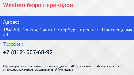 Western, бюро переводов по адресу 194358, Россия, Санкт-Петербург, проспект Просвещения, 34 в дальнейшем Организация, размещена в следующих категориях: