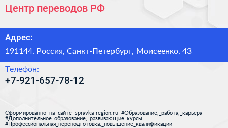 Центр-переводов.РФ по адресу 191144, Россия, Санкт-Петербург, Моисеенко, 43 в дальнейшем Организация, размещена в следующих категориях: