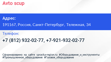 Avto-scup по адресу 191167, Россия, Санкт-Петербург, Тележная, 34 в дальнейшем Организация, размещена в следующих категориях:
