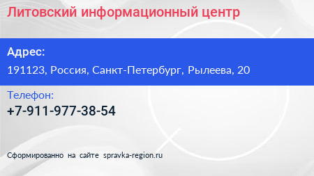 Литовский информационный центр по адресу 191123, Россия, Санкт-Петербург, Рылеева, 20 в дальнейшем Организация, размещена в следующих категориях: