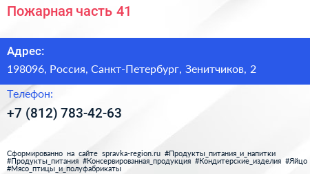 Пожарная часть №41 по адресу 198096, Россия, Санкт-Петербург, Зенитчиков, 2 в дальнейшем Организация, размещена в следующих категориях: