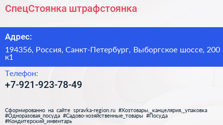 СпецСтоянка, штрафстоянка по адресу 194356, Россия, Санкт-Петербург, Выборгское шоссе, 200 к1 в дальнейшем Организация, размещена в следующих категориях: