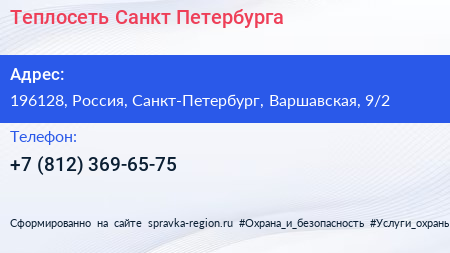 Теплосеть Санкт-Петербурга по адресу 196128, Россия, Санкт-Петербург, Варшавская, 9/2 в дальнейшем Организация, размещена в следующих категориях: