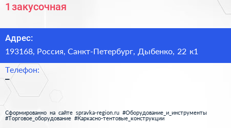 №1, закусочная по адресу 193168, Россия, Санкт-Петербург, Дыбенко, 22 к1 в дальнейшем Организация, размещена в следующих категориях: