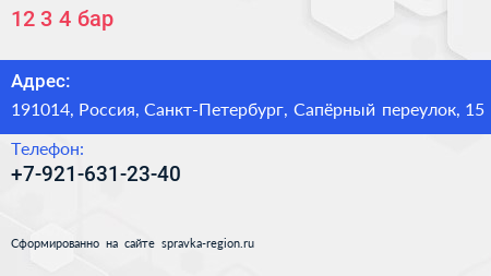 12 3/4, бар по адресу 191014, Россия, Санкт-Петербург, Сапёрный переулок, 15 в дальнейшем Организация, размещена в следующих категориях: