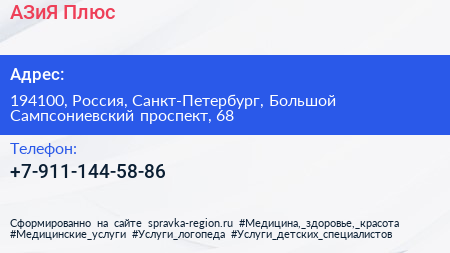 АЗиЯ-Плюс по адресу 194100, Россия, Санкт-Петербург, Большой Сампсониевский проспект, 68 в дальнейшем Организация, размещена в следующих категориях: