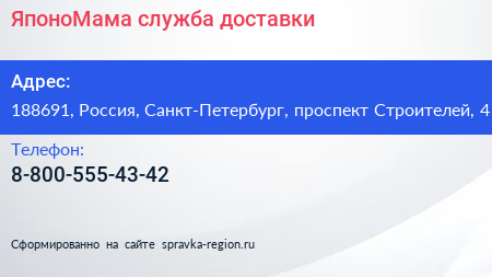 ЯпоноМама, служба доставки по адресу 188691, Россия, Санкт-Петербург, проспект Строителей, 4 в дальнейшем Организация, размещена в следующих категориях: