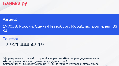 Банька.ру по адресу 199058, Россия, Санкт-Петербург, Кораблестроителей, 33 к2 в дальнейшем Организация, размещена в следующих категориях: