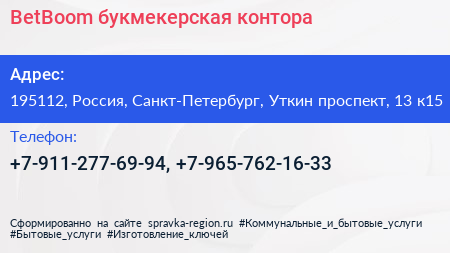 BetBoom, букмекерская контора по адресу 195112, Россия, Санкт-Петербург, Уткин проспект, 13 к15 в дальнейшем Организация, размещена в следующих категориях: