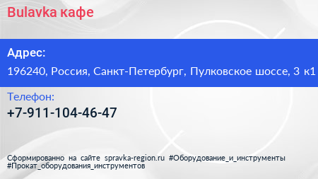 Bulavka, кафе по адресу 196240, Россия, Санкт-Петербург, Пулковское шоссе, 3 к1 в дальнейшем Организация, размещена в следующих категориях:
