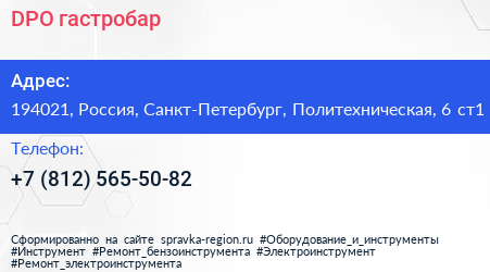 DPO, гастробар по адресу 194021, Россия, Санкт-Петербург, Политехническая, 6 ст1 в дальнейшем Организация, размещена в следующих категориях: