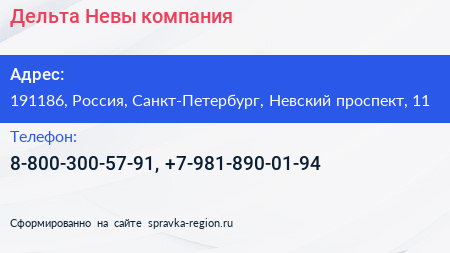 Дельта Невы, компания по адресу 191186, Россия, Санкт-Петербург, Невский проспект, 11 в дальнейшем Организация, размещена в следующих категориях: