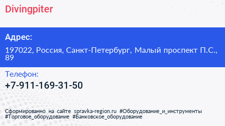 Divingpiter по адресу 197022, Россия, Санкт-Петербург, Малый проспект П.С., 89 в дальнейшем Организация, размещена в следующих категориях:
