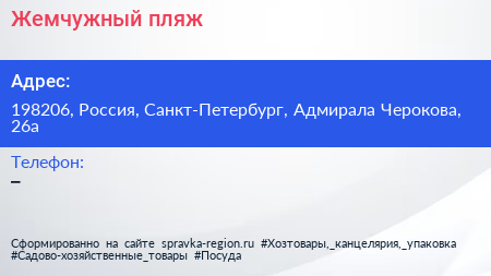 Жемчужный пляж по адресу 198206, Россия, Санкт-Петербург, Адмирала Черокова, 26а в дальнейшем Организация, размещена в следующих категориях:
