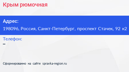 Крым, рюмочная по адресу 198096, Россия, Санкт-Петербург, проспект Стачек, 92 к2 в дальнейшем Организация, размещена в следующих категориях: