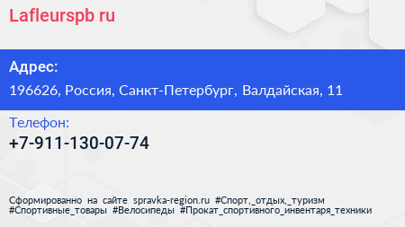 Lafleurspb.ru по адресу 196626, Россия, Санкт-Петербург, Валдайская, 11 в дальнейшем Организация, размещена в следующих категориях: