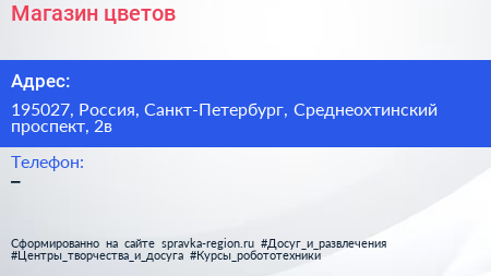 Магазин цветов по адресу 195027, Россия, Санкт-Петербург, Среднеохтинский проспект, 2в в дальнейшем Организация, размещена в следующих категориях: