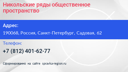 Никольские ряды, общественное пространство по адресу 190068, Россия, Санкт-Петербург, Садовая, 62 в дальнейшем Организация, размещена в следующих категориях: