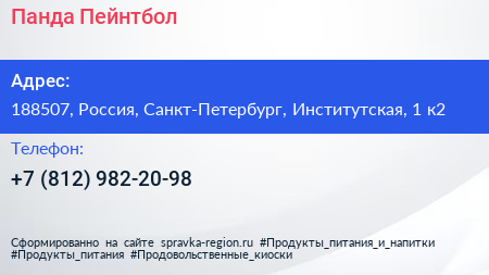 Панда Пейнтбол по адресу 188507, Россия, Санкт-Петербург, Институтская, 1 к2 в дальнейшем Организация, размещена в следующих категориях: