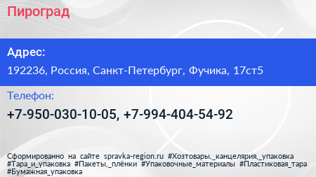 Пироград по адресу 192236, Россия, Санкт-Петербург, Фучика, 17ст5 в дальнейшем Организация, размещена в следующих категориях: