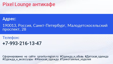 Pixel Lounge, антикафе по адресу 190013, Россия, Санкт-Петербург, Малодетскосельский проспект, 28 в дальнейшем Организация, размещена в следующих категориях:
