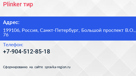 Plinker, тир по адресу 199106, Россия, Санкт-Петербург, Большой проспект В.О., 76 в дальнейшем Организация, размещена в следующих категориях: