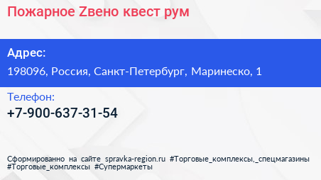 Пожарное Zвено, квест-рум по адресу 198096, Россия, Санкт-Петербург, Маринеско, 1 в дальнейшем Организация, размещена в следующих категориях: