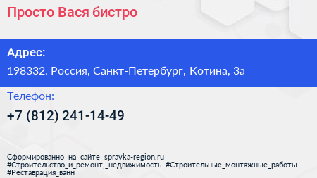 Просто Вася, бистро по адресу 198332, Россия, Санкт-Петербург, Котина, 3а в дальнейшем Организация, размещена в следующих категориях: