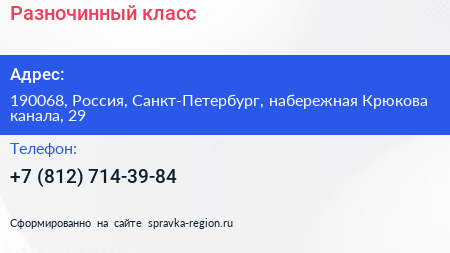 Разночинный класс по адресу 190068, Россия, Санкт-Петербург, набережная Крюкова канала, 29 в дальнейшем Организация, размещена в следующих категориях: