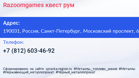 Razoomgames, квест-рум по адресу 190031, Россия, Санкт-Петербург, Московский проспект, 6 в дальнейшем Организация, размещена в следующих категориях: