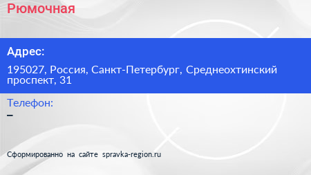 Рюмочная по адресу 195027, Россия, Санкт-Петербург, Среднеохтинский проспект, 31 в дальнейшем Организация, размещена в следующих категориях: