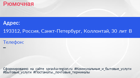 Рюмочная по адресу 193312, Россия, Санкт-Петербург, Коллонтай, 30 лит В в дальнейшем Организация, размещена в следующих категориях: