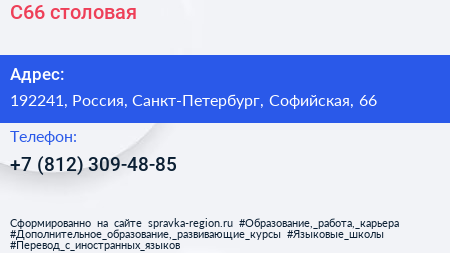 С66, столовая по адресу 192241, Россия, Санкт-Петербург, Софийская, 66 в дальнейшем Организация, размещена в следующих категориях: