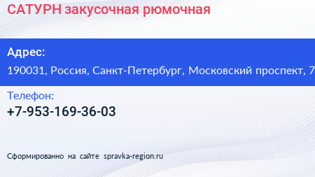 САТУРН, закусочная-рюмочная по адресу 190031, Россия, Санкт-Петербург, Московский проспект, 7 в дальнейшем Организация, размещена в следующих категориях: