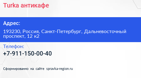 #Turka, антикафе по адресу 193230, Россия, Санкт-Петербург, Дальневосточный проспект, 12 к2 в дальнейшем Организация, размещена в следующих категориях:
