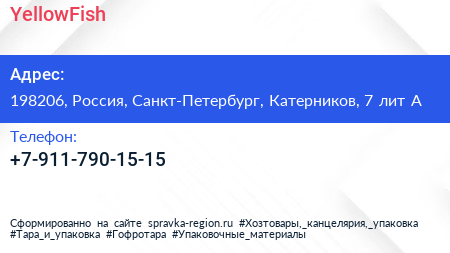 YellowFish по адресу 198206, Россия, Санкт-Петербург, Катерников, 7 лит А в дальнейшем Организация, размещена в следующих категориях: