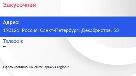 Закусочная по адресу 190121, Россия, Санкт-Петербург, Декабристов, 53 в дальнейшем Организация, размещена в следующих категориях:
