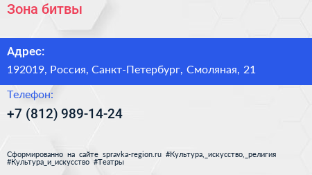 Зона битвы по адресу 192019, Россия, Санкт-Петербург, Смоляная, 21 в дальнейшем Организация, размещена в следующих категориях: