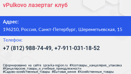 #vPulkovo, лазертаг-клуб по адресу 196210, Россия, Санкт-Петербург, Шереметьевская, 15 в дальнейшем Организация, размещена в следующих категориях: