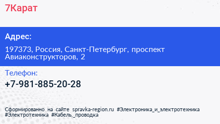 7Карат по адресу 197373, Россия, Санкт-Петербург, проспект Авиаконструкторов, 2 в дальнейшем Организация, размещена в следующих категориях: