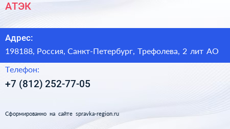 АТЭК по адресу 198188, Россия, Санкт-Петербург, Трефолева, 2 лит АО в дальнейшем Организация, размещена в следующих категориях: