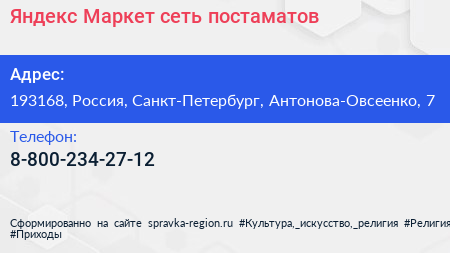 Яндекс.Маркет, сеть постаматов по адресу 193168, Россия, Санкт-Петербург, Антонова-Овсеенко, 7 в дальнейшем Организация, размещена в следующих категориях: