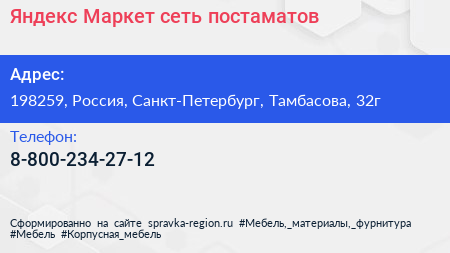 Яндекс.Маркет, сеть постаматов по адресу 198259, Россия, Санкт-Петербург, Тамбасова, 32г в дальнейшем Организация, размещена в следующих категориях: