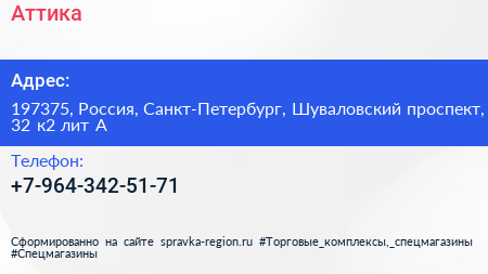 Аттика по адресу 197375, Россия, Санкт-Петербург, Шуваловский проспект, 32 к2 лит А в дальнейшем Организация, размещена в следующих категориях: